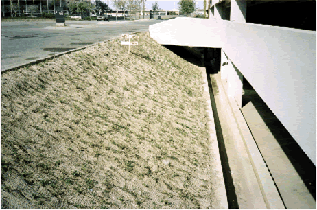 Planted in pH Balanced Compost (formerly called Acid Gro) and tilled into existing soil. This embankment is on a 45 degree angle with heavy water runoff during rains. 4” pots were installed on 12” centers. |